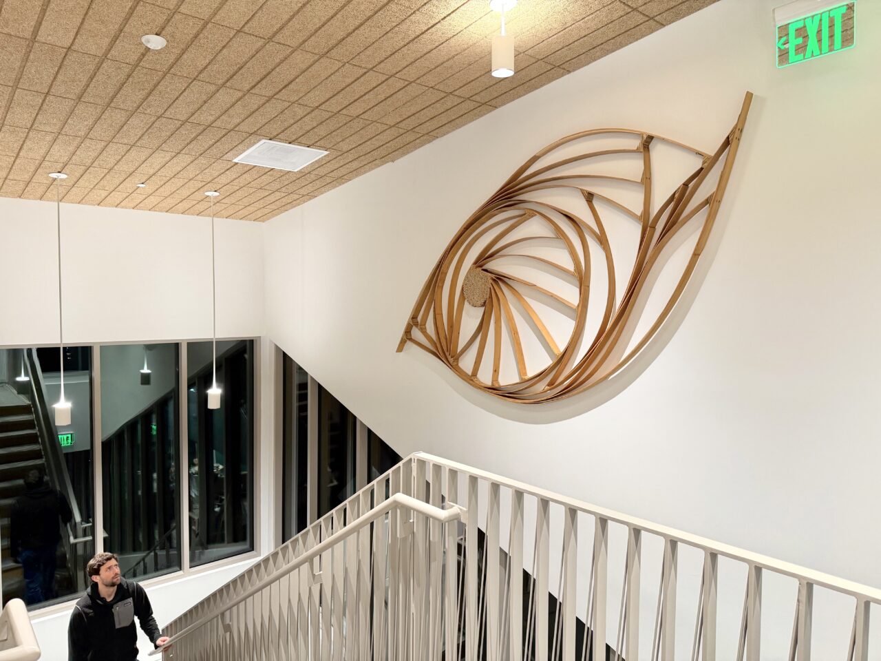 This Fall saw the opening of the Nehalem Bay Community Health Center in Wheeler, in Northwest Oregon. This facility not only promises more available healthcare for the North Coast, it also includes an impressive art program, organized by local citizens, with scores of donated works from the very strong surrounding artist community. I am pleased to share photos of my bent-wood sculpture installed in the Center’s main stairwell — one of a series of similar pieces l have been working on for the past couple of years. It was an honor to be included in this project, and a pleasure collaborating with the volunteers and staff of the Center.